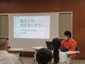 防災月間にちなんで「震災との向き合いかた」と題して、三豊広域行政組合北消防署の方からお話をいただきました。