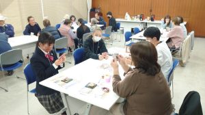 今回も四国学院大学香川西高等学校の2,3年生がボランティアで来てくれました。学生とともに、参加された皆さんと歓談したりゲームをして楽しく交流しました。