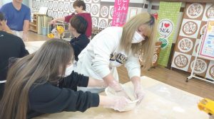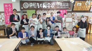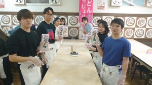 785段の階段を上り詰め、それぞれの願いをこめて金刀比羅宮を参拝しました。その後、うどん作りを体験し、無事、中野うどん学校を卒業することができました。