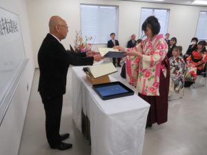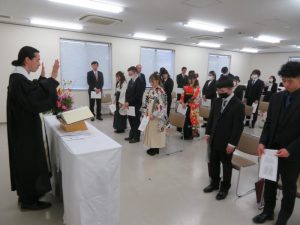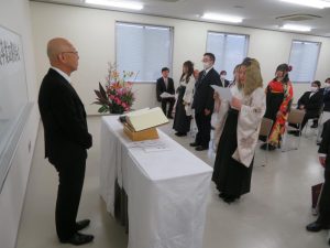 四国学院大学のネルソン宗教委員長にご祈祷いただき、西谷学長から卒業証書が授与されました。